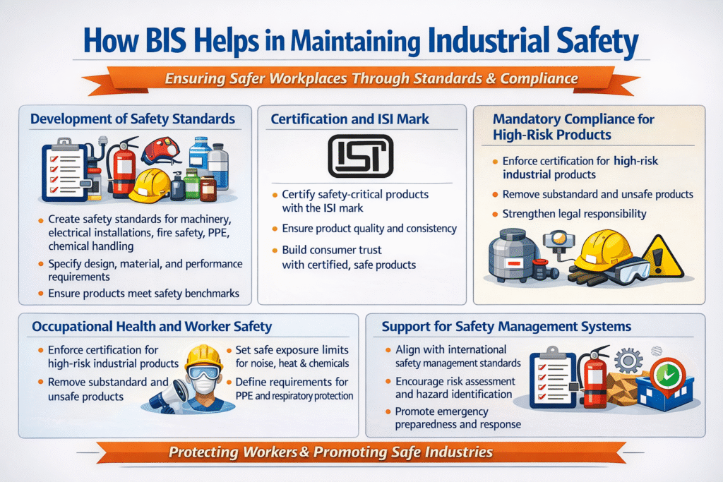 Industrial safety is a critical pillar of sustainable industrial growth. As industries expand in scale and complexity, the risks related to machinery, chemicals, electrical systems, and workplace environments also increase. In India, the Bureau of Indian Standards (BIS) plays a vital role in minimizing these risks by setting benchmarks that ensure safety, quality, and reliability across industrial operations.